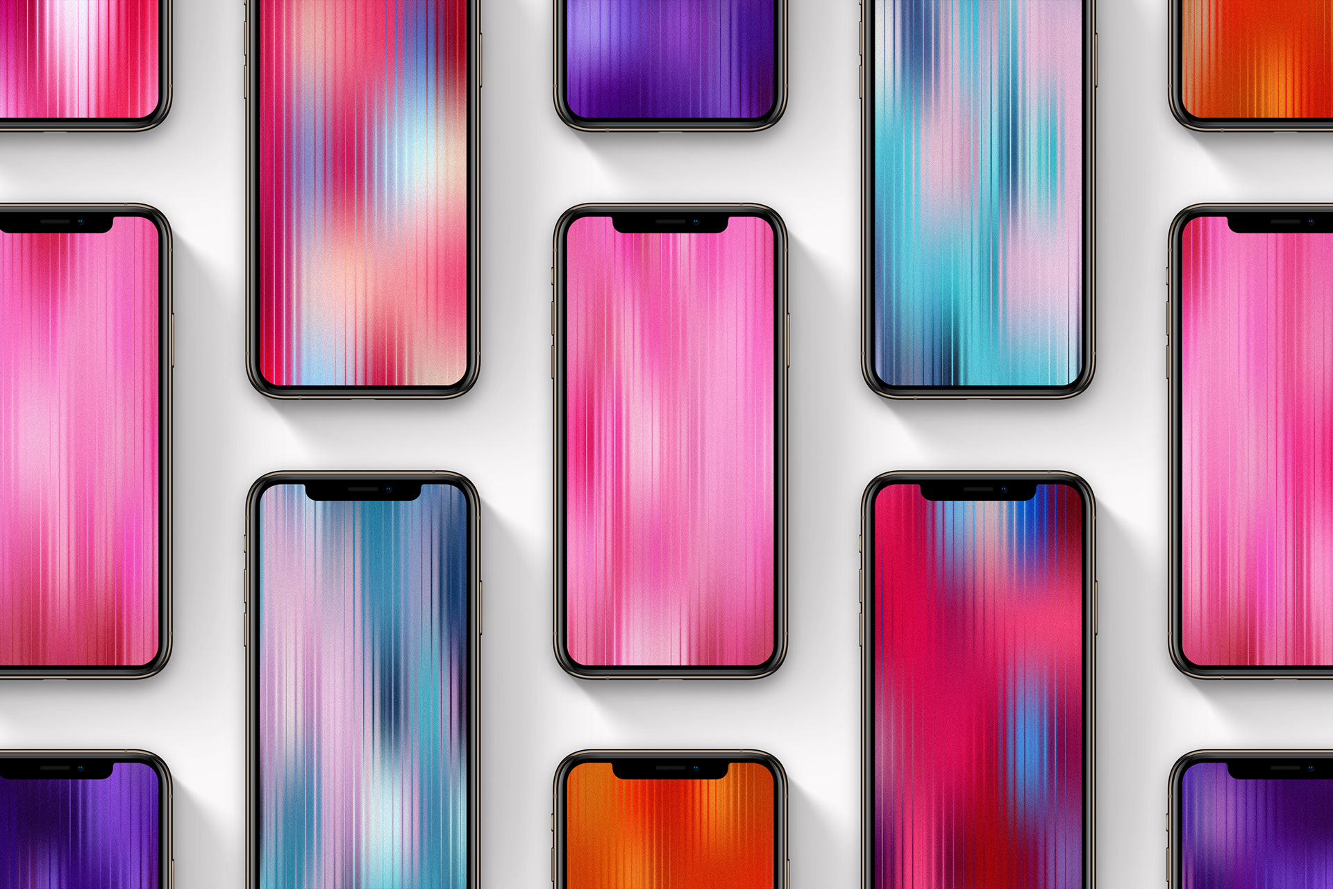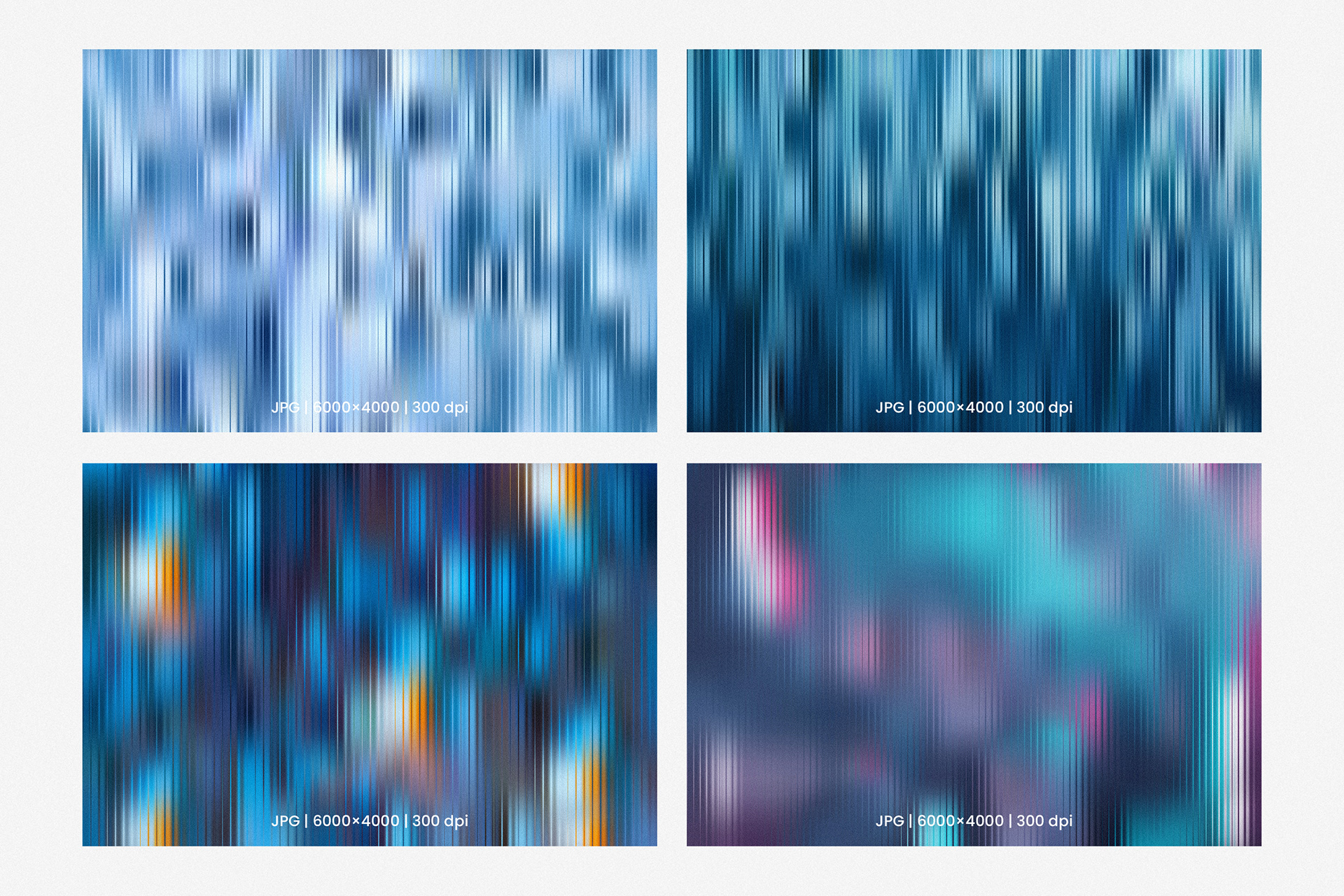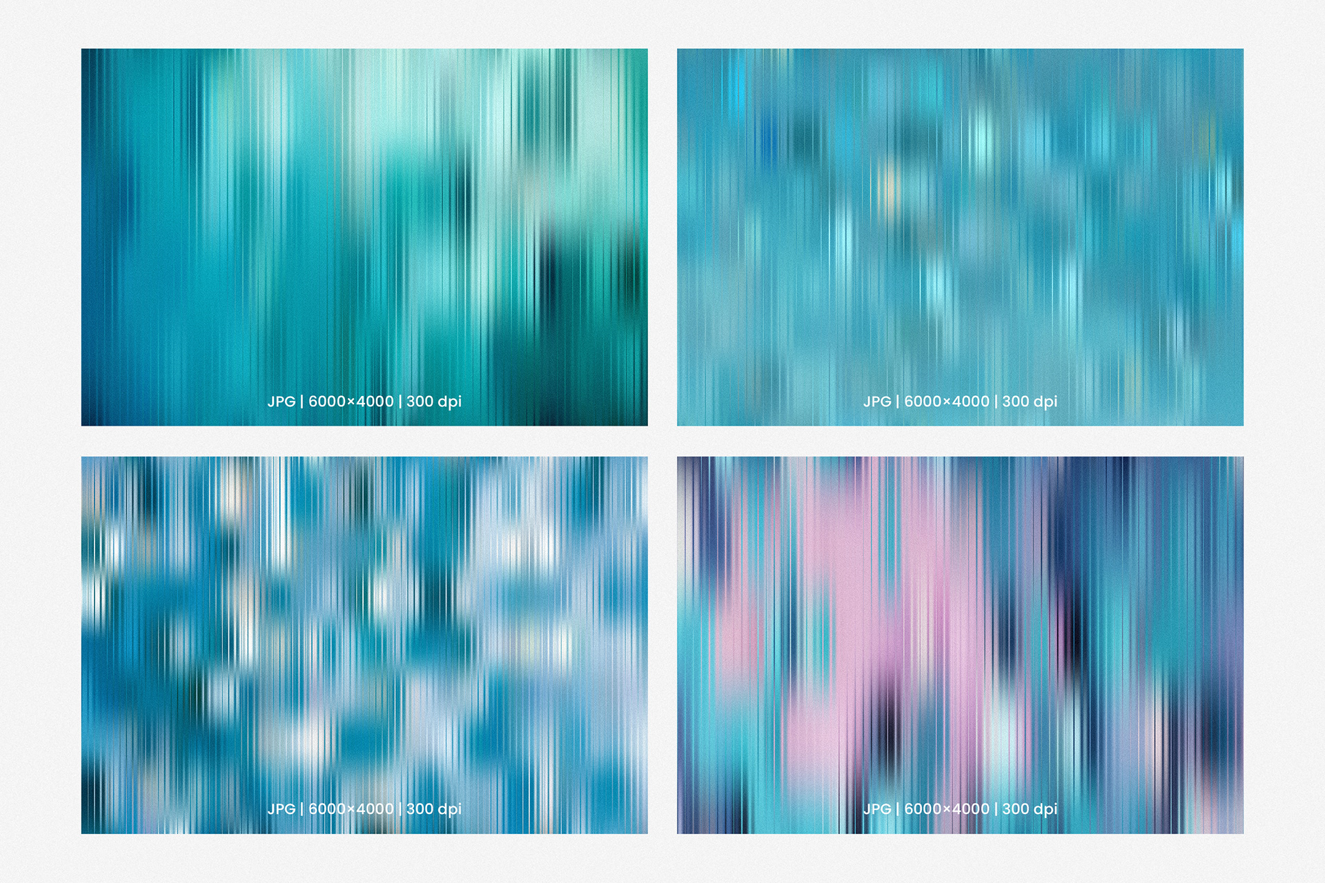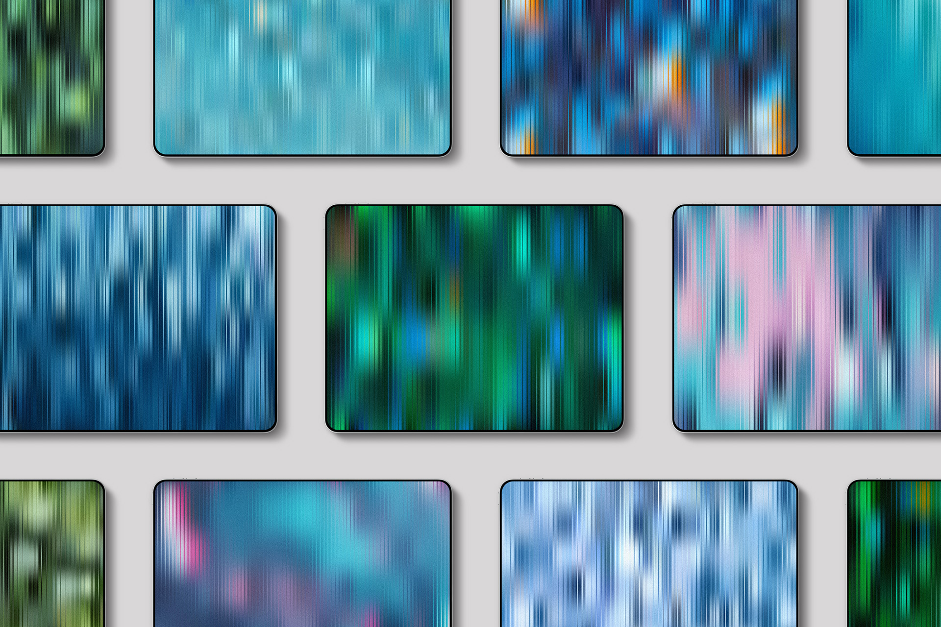 A collection of textured gradients inspired by the reflections and colors of nature. Each background features a rippled, fractal glass effect combined with subtle grain for a soft, modern sense of depth.