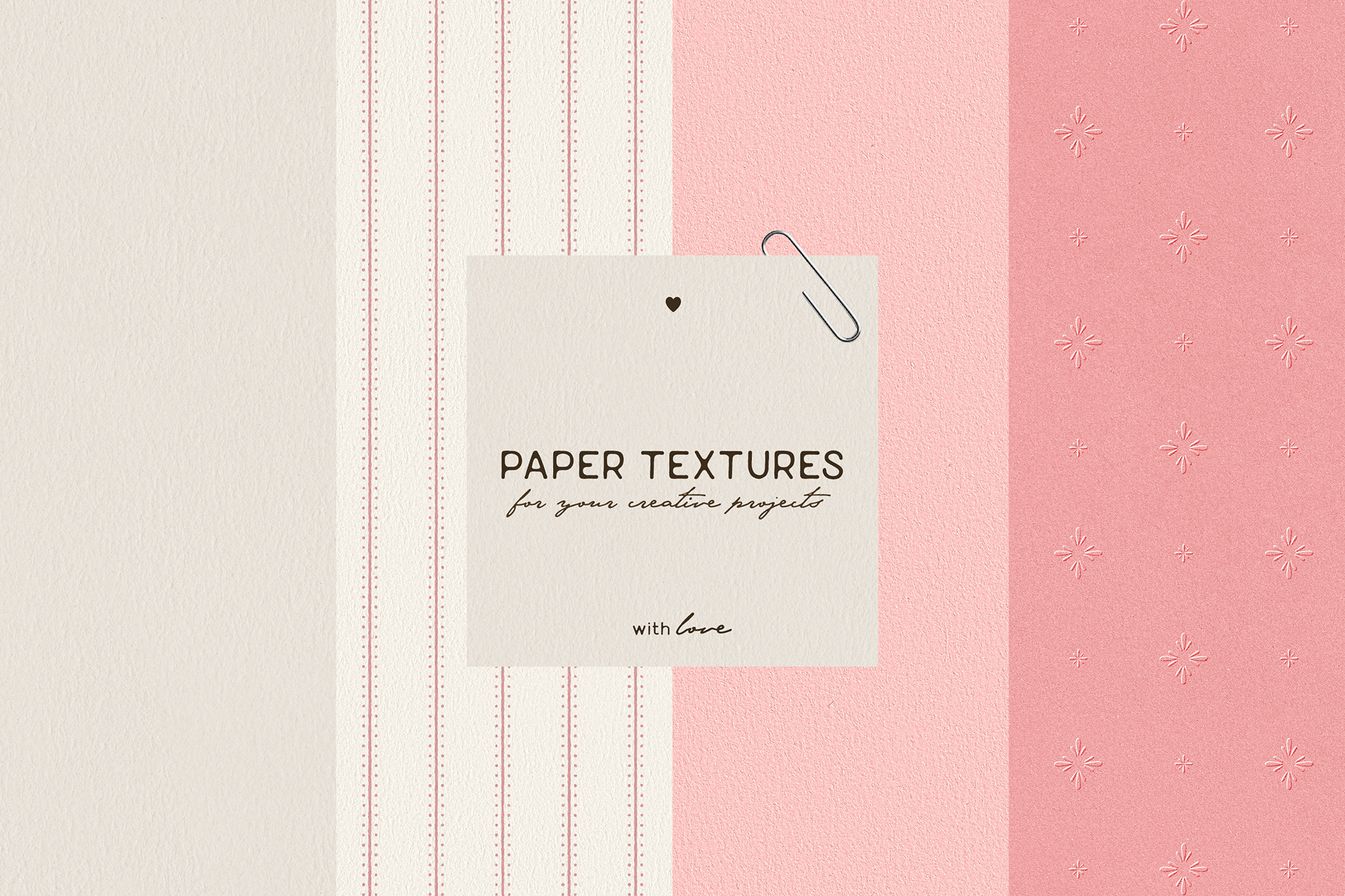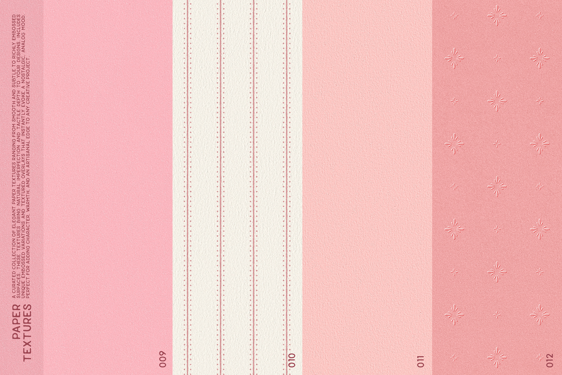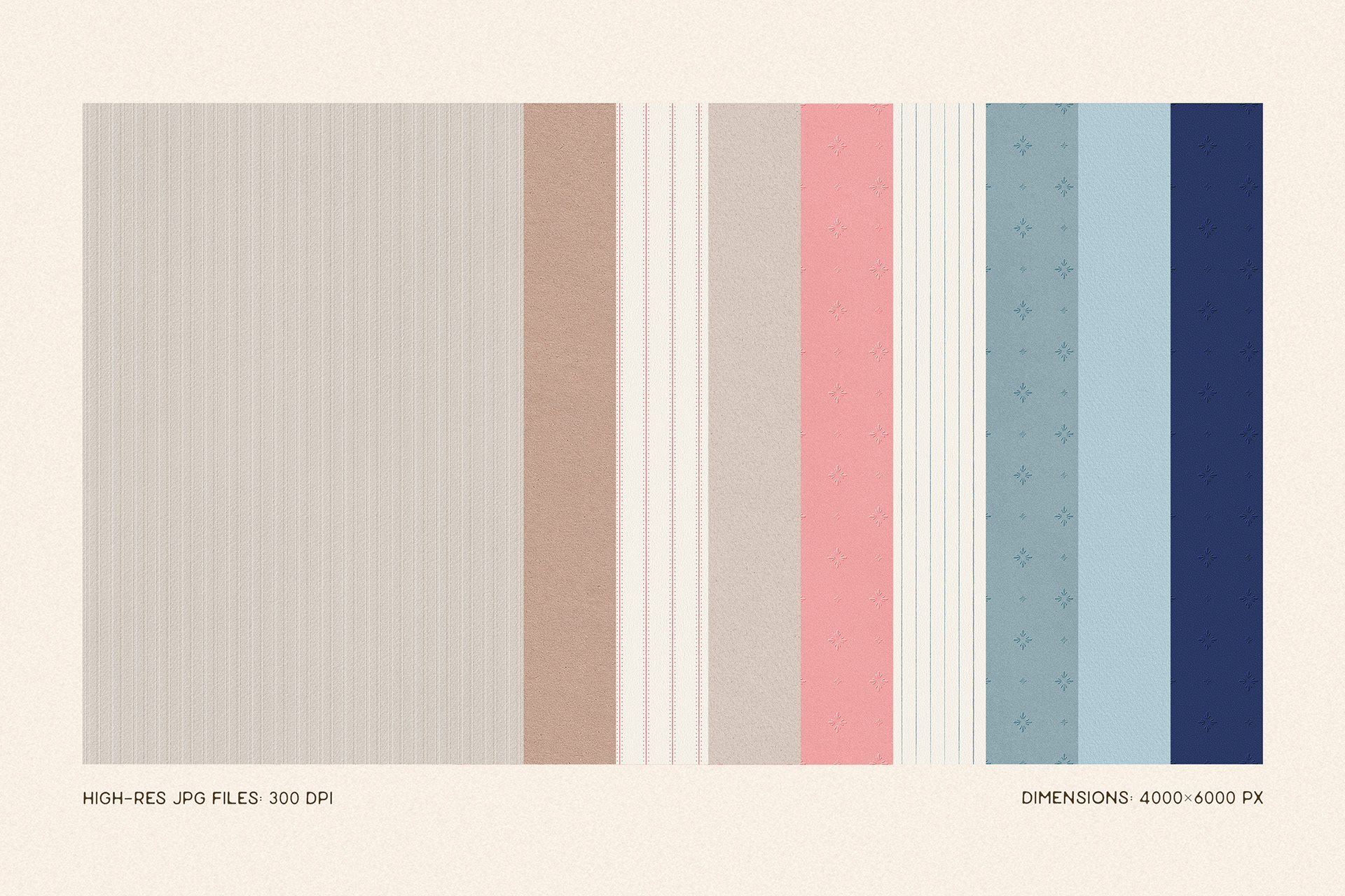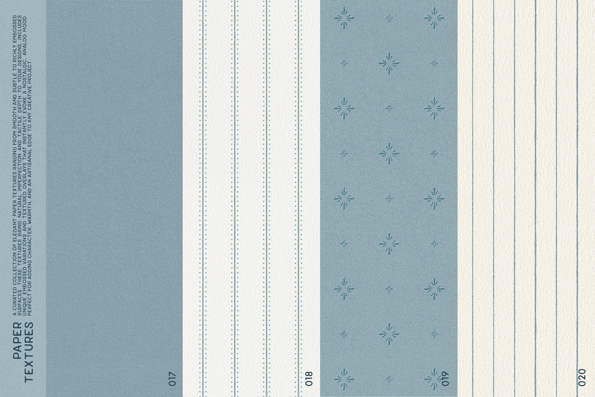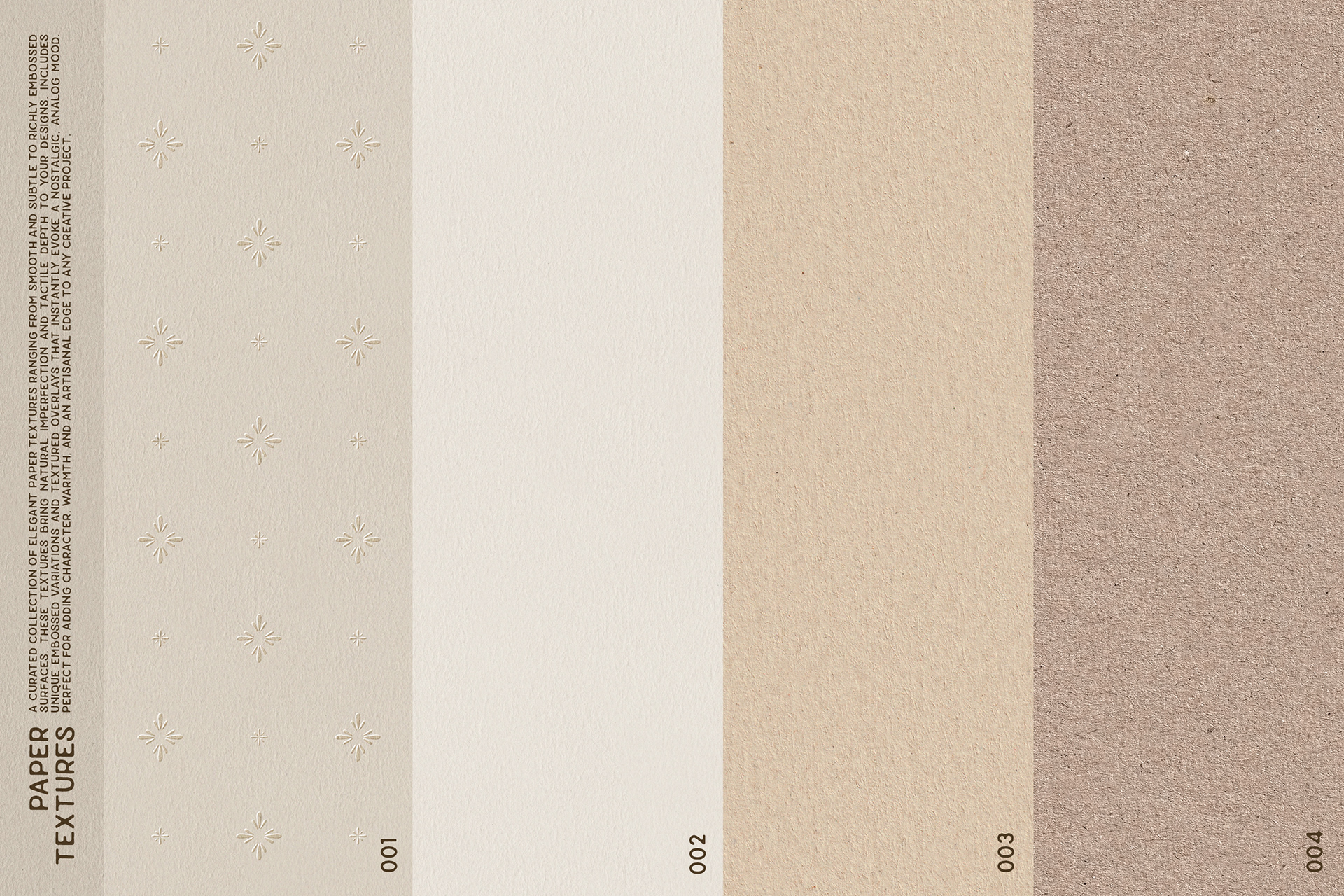 A collection of charming paper surfaces in soft neutral tones with a subtle whimsical character. Includes both smooth and embossed variations featuring gentle texture and natural depth, inspired by the look and feel of handmade paper.
