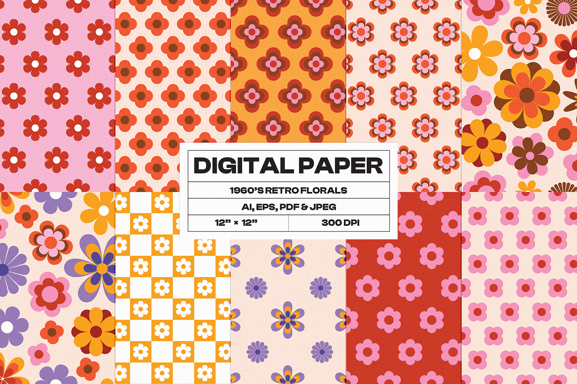 Retro Florals: Digital Paper Set
