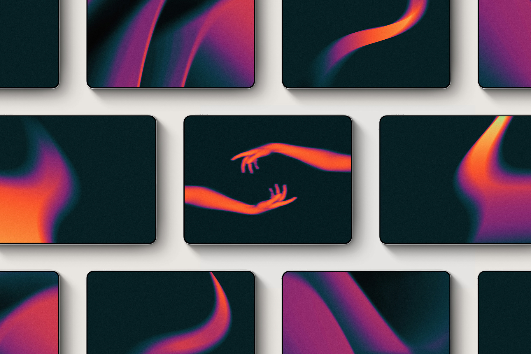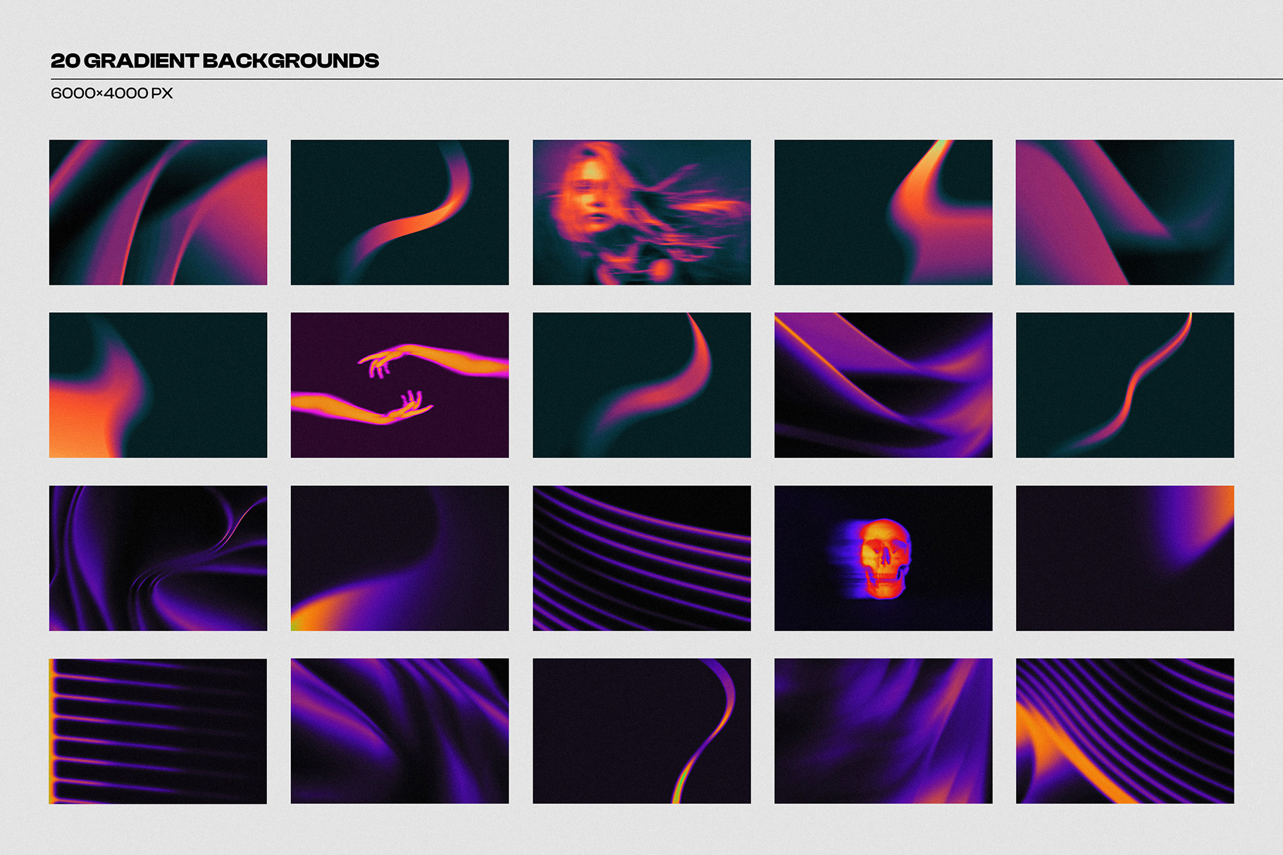 A bold collection of gradients inspired by thermal imaging and heatmap visuals. Blending vivid contrasts of magenta, orange, and electric blue, each background radiates energy and movement, enhanced by a subtle grainy texture.